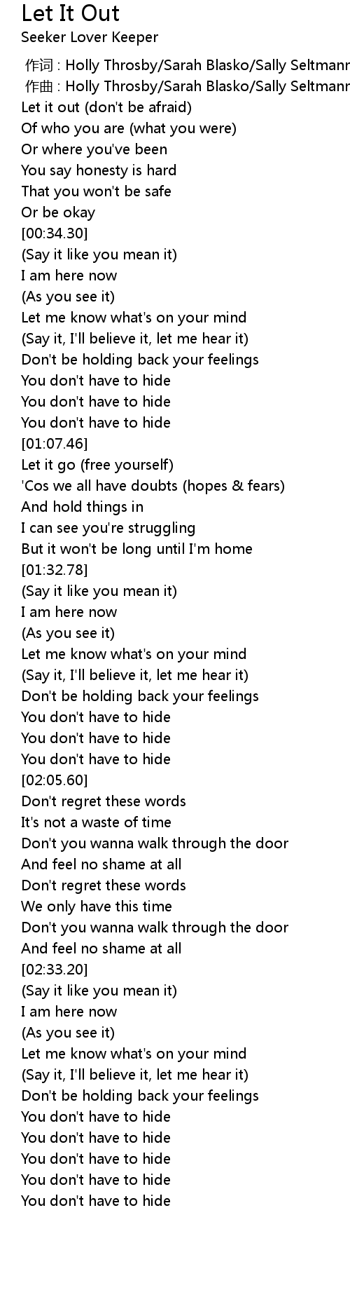| [02:44.91] | (Say it, I'll believe it, let me hear it) |