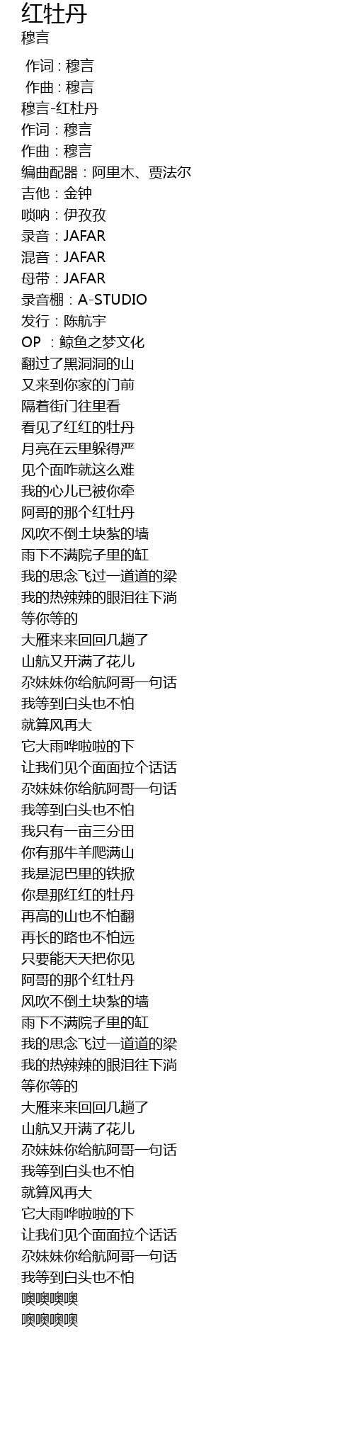 | [00:55.148] | ā gē de nà gè hóng mǔ dān |