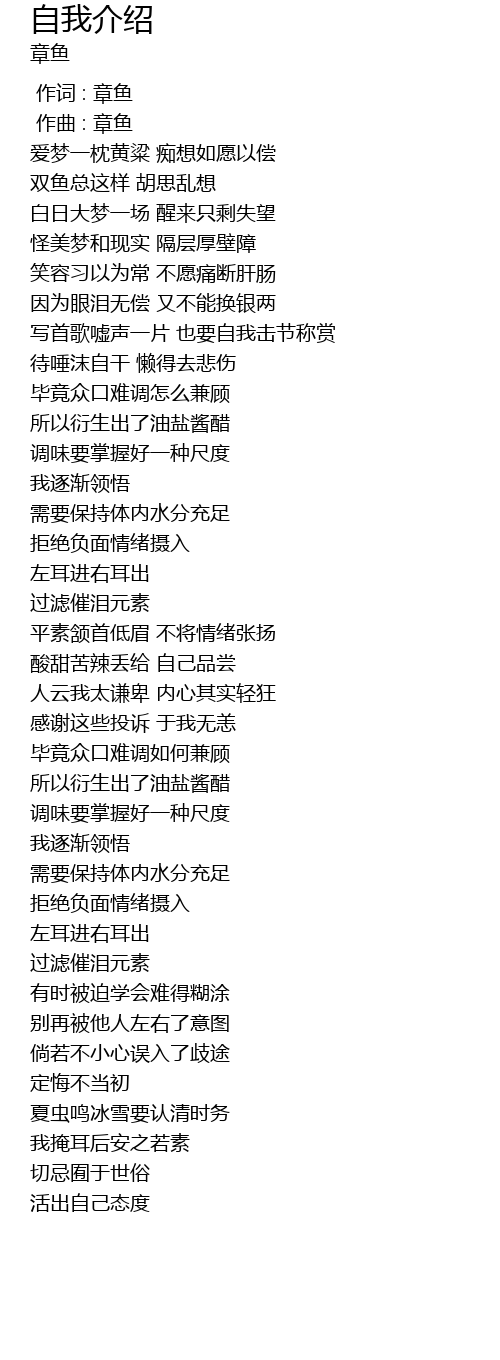 | [01:12.917] | xiě shǒu gē xū shēng yī piàn yě yào zì wǒ jī jié chēng shǎng |