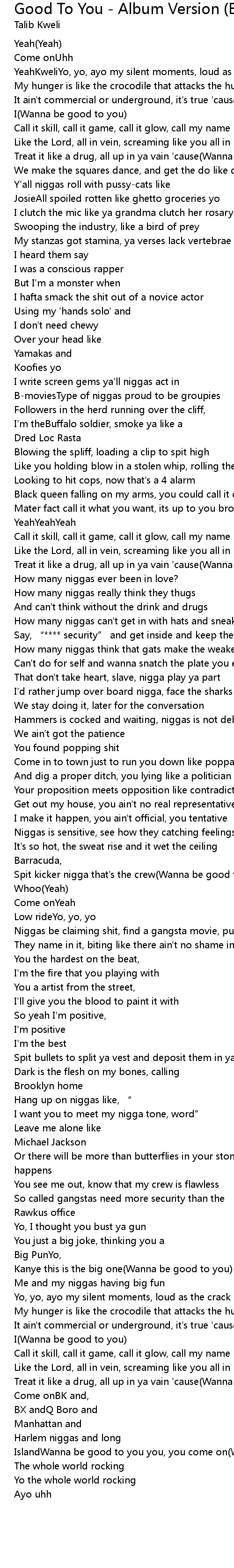 | Spit kicker nigga that' s the crew Wanna be good to you | |