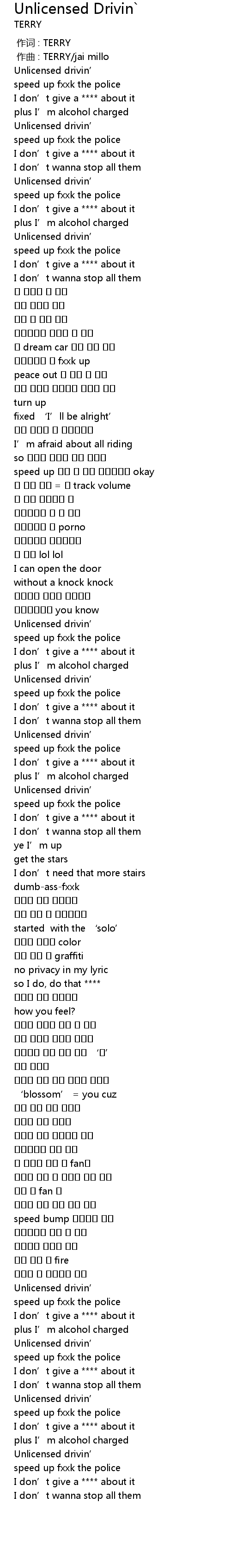 | [00:15.20] | speed up fxxk the police |