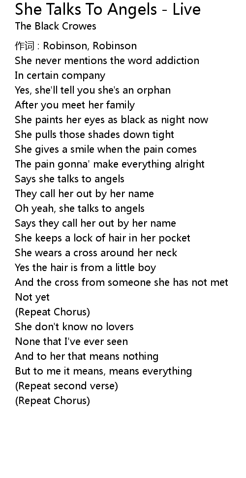 | Song | She Talks To Angels - Live |