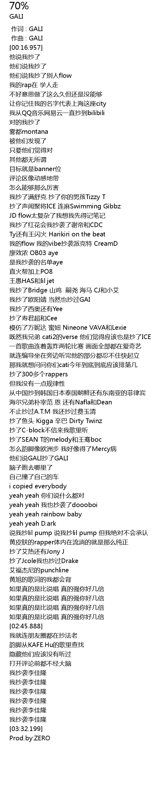 | [01:18.308] | 我抄了欧阳靖 当然也抄过GAI |