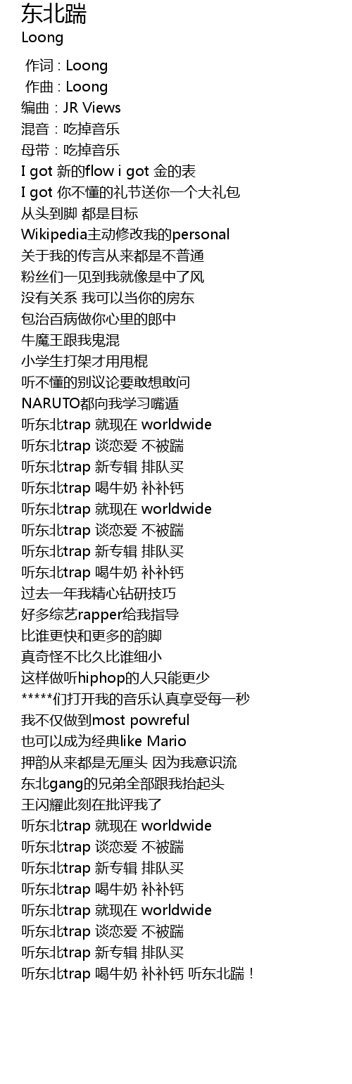 | [02:00.828] | 听东北trap 就现在 worldwide |