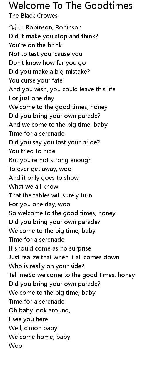 | Tell meSo welcome to the good times, honey | |