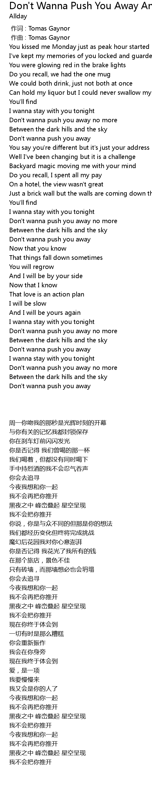 | [00:48.80] | Don't wanna push you away no more |