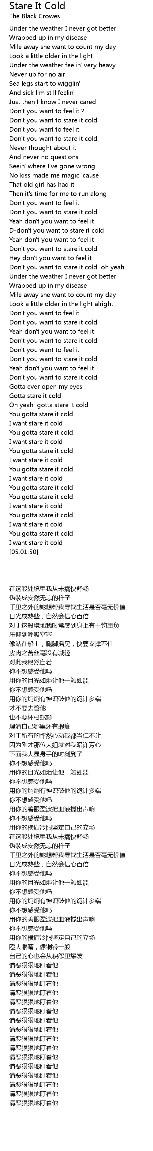 | [04:59.64] | I want stare it cold |
