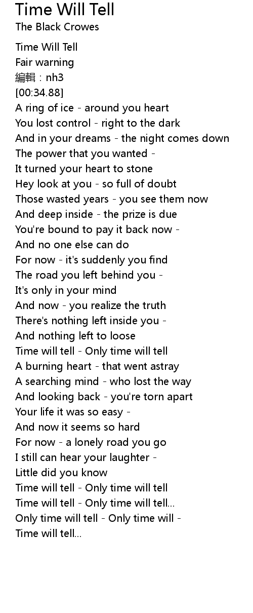 | [00:03.83] | Time Will Tell |