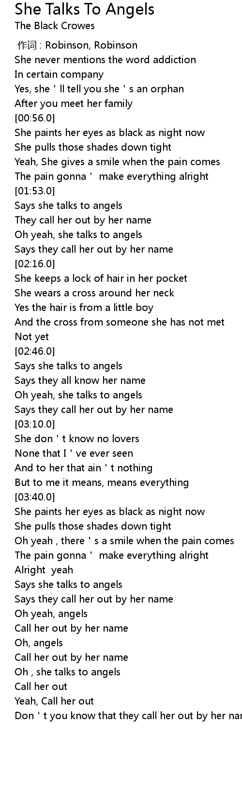 | [02:59.0] | Oh yeah, she talks to angels |