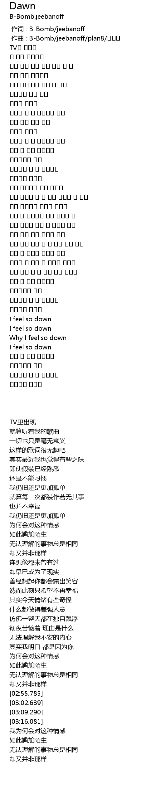 | [03:02.639] | I feel so down |