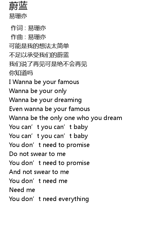 | [00:00.000] | 作词 : 易珊亦 |