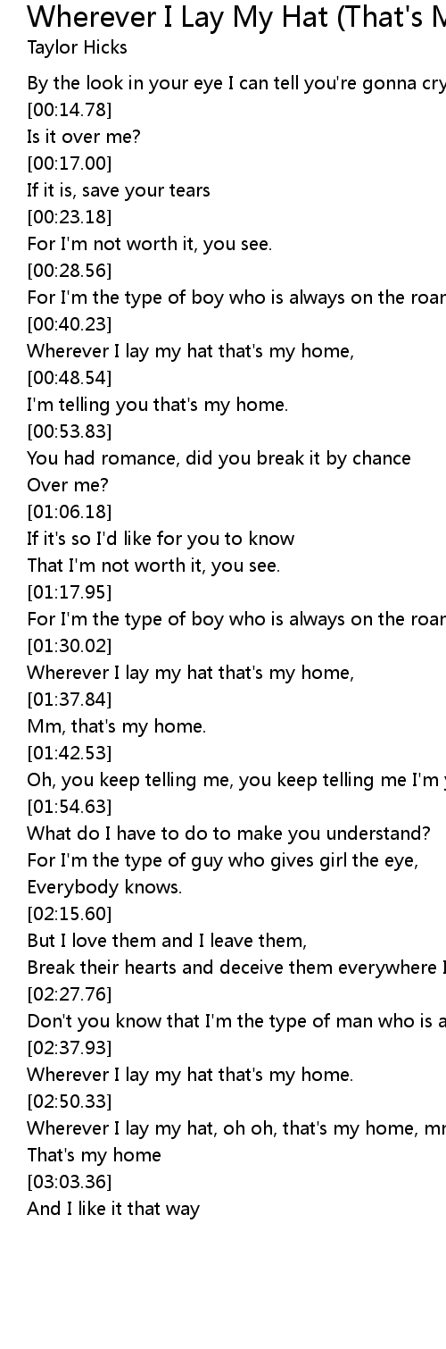 [02:51.13] Wherever I lay my hat, oh oh, that's my home, mm yeh,