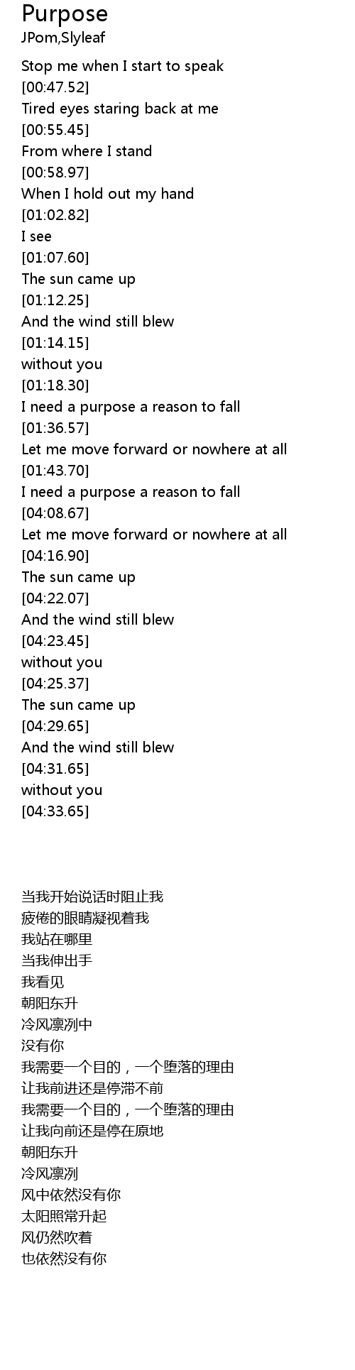 | [04:01.30] | I need a purpose a reason to fall |