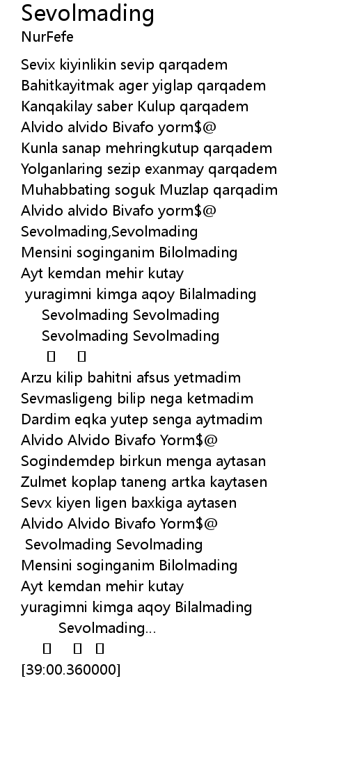 | [00:37.14] | Alvido alvido Bivafo yorm$@ |
