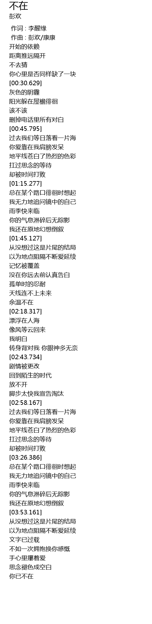 | [04:23.758] | nǐ yǐ bù zài |