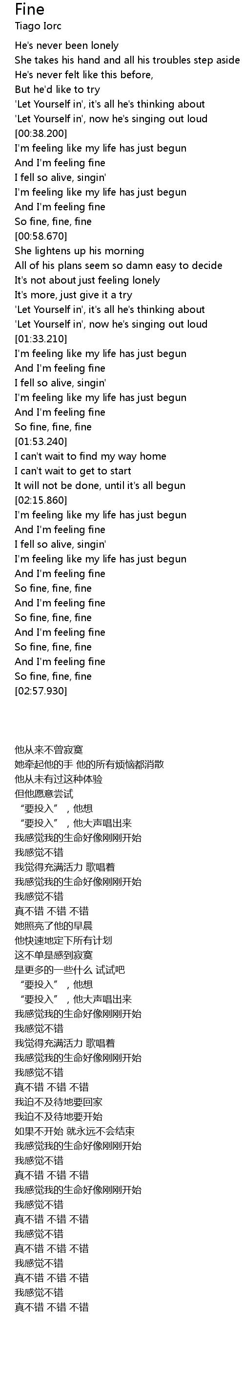 And I'm feeling fine |