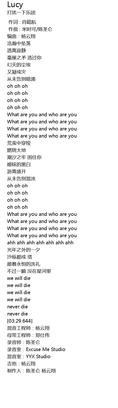 | [03:34.451] | lu yin shi: Excuse Me Studio |