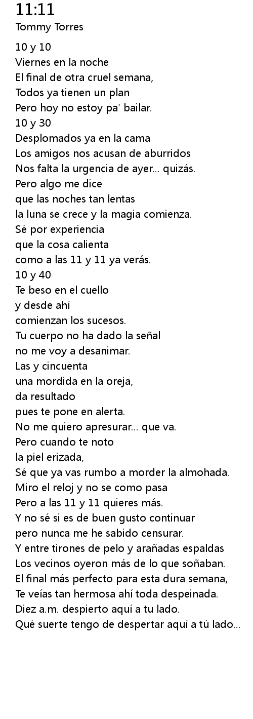 | Pero a las 11 y 11 quieres ma s. | |