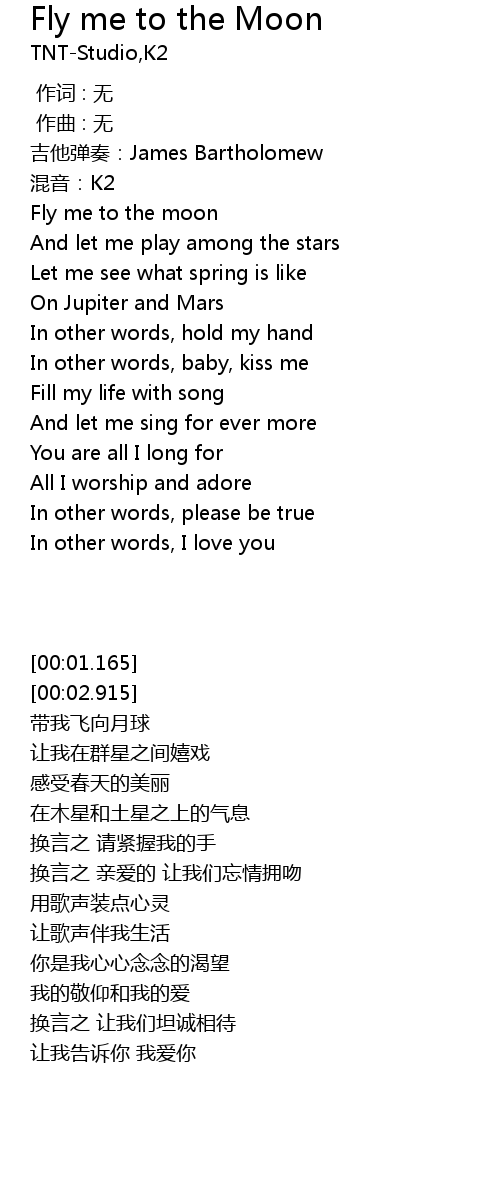 | [00:01.165] | 吉他弹奏:James Bartholomew |