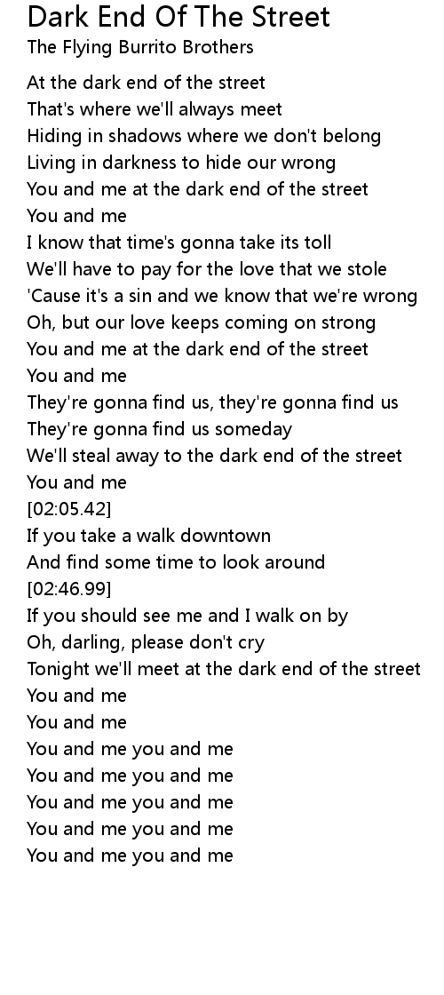 [03:00.93] Tonight we'll meet at the dark end of the street