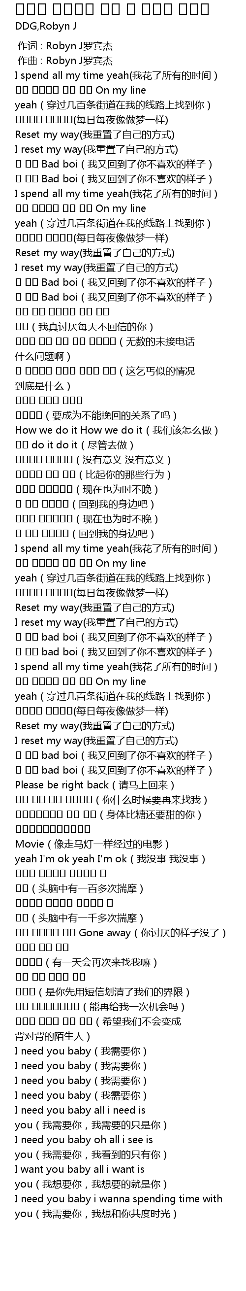 | [02:46.449] | I need you baby i wanna spending time with you(我需要你,我想和你共度时光) |