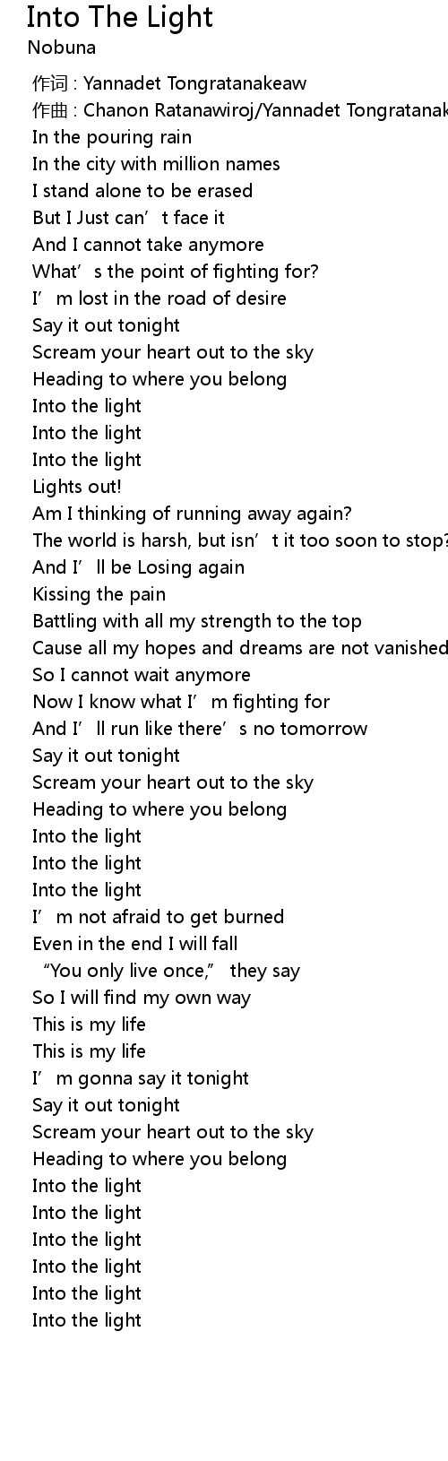 | [02:01.185] | Into the light |
