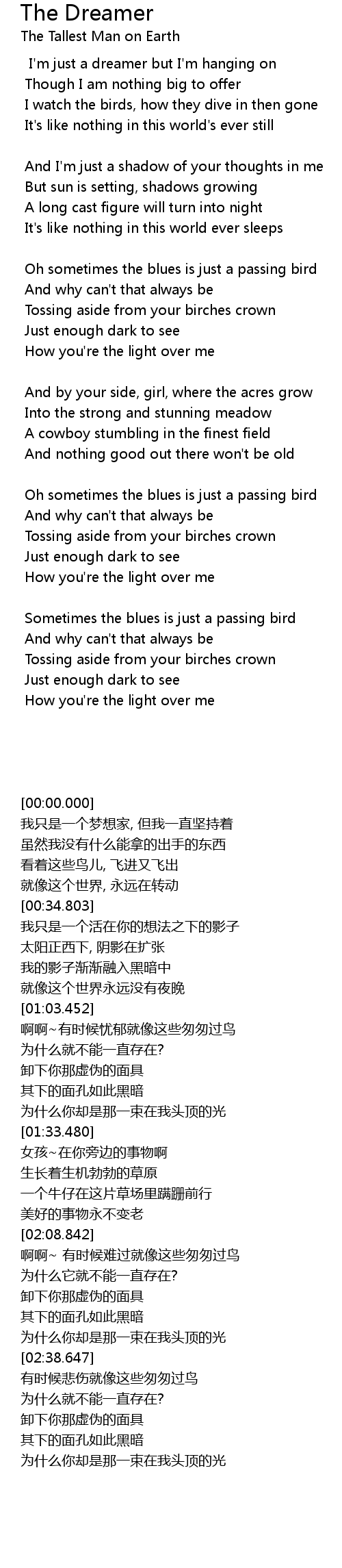 Oh sometimes the blues is just a passing bird |