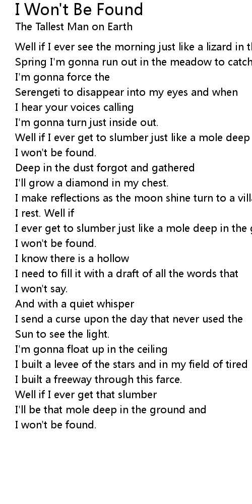 Well if I ever get to slumber just like a mole deep in the ground hell, |