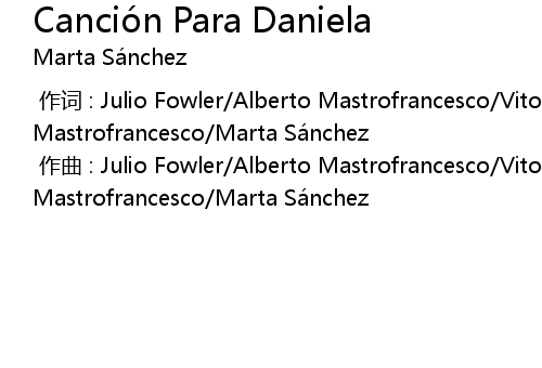 | [00:00.00-1] | zuo qu : Julio Fowler Alberto Mastrofrancesco Vito Mastrofrancesco Marta Sa nchez |
