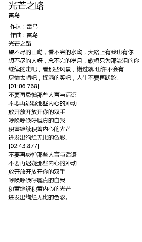 | [00:01.000] | zuò qǔ : léi niǎo |