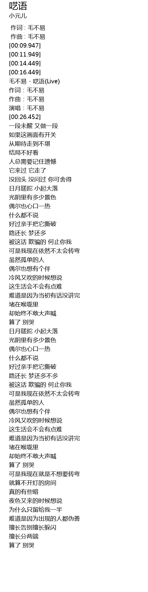 | [00:18.201] | 毛不易 - 呓语(Live) |