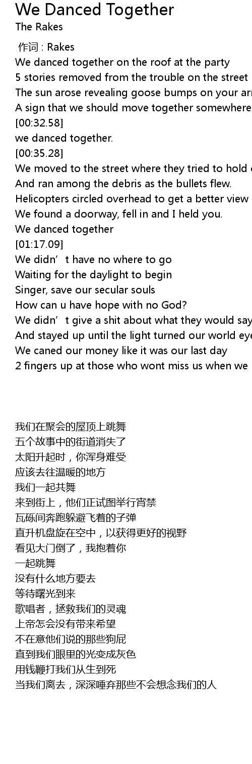 | [00:33.20] | we danced together. |