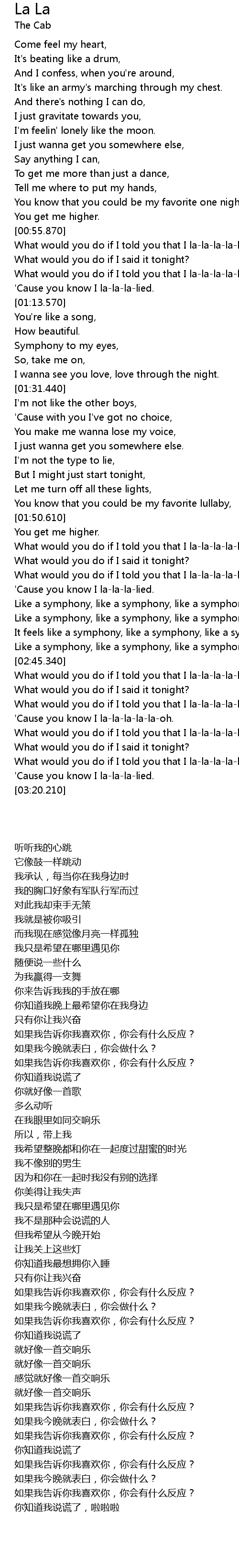 What would you do if I told you that I la-la-la-la-loved you. |