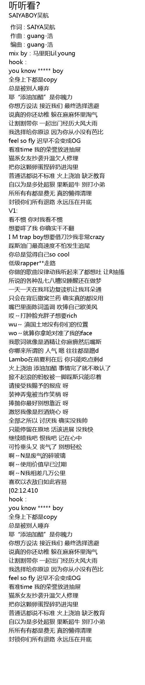 | [01:38.760] | Lambo在前夏利在后 你只能吃点剩d |