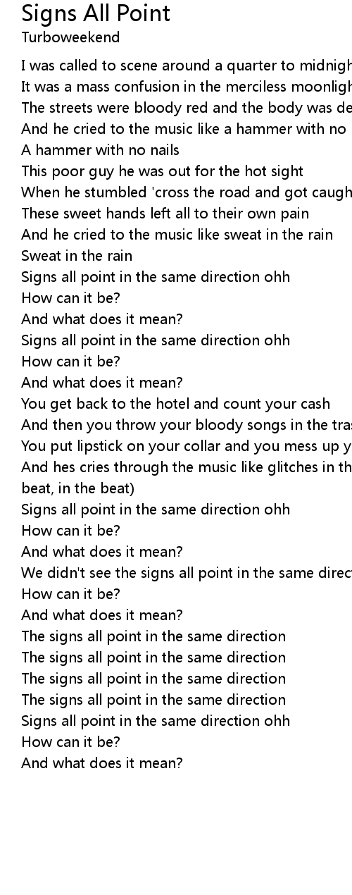 Signs all point in the same direction ohh |