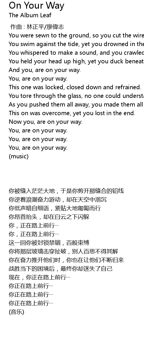 | [01:16.72] | You swim against the tide, yet you drowned in the sky. |
