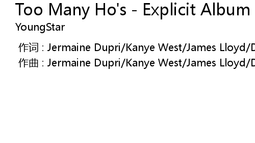 | [00:00.000] | 作词 : Jermaine Dupri/Kanye West/James Lloyd/Deric Angelettie |