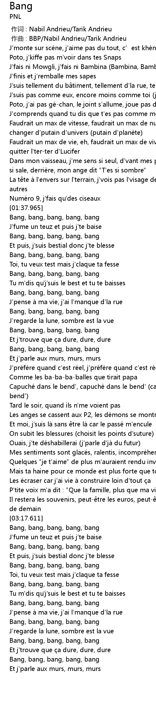| [00:01.000] | zuo qu : BBP Nabil Andrieu Tarik Andrieu |