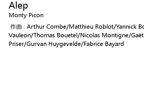 | [00:00.00-1] | zuò qǔ : Arthur Combe Matthieu Roblot Yannick Bordet Benjamin Vauleon Thomas Bouetel Nicolas Montigne Ga tan Bernard Sté phane Hardy Lionel Priser Gurvan Huygevelde Fabrice Bayard |