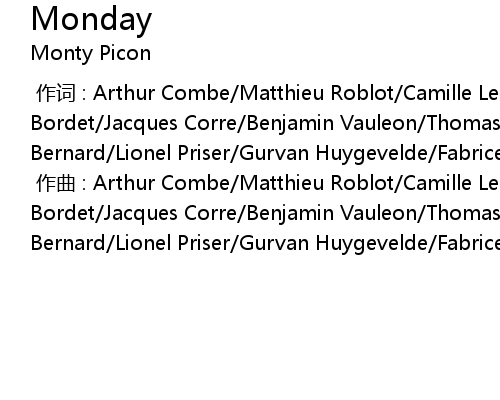 | [00:00.00-1] | zuò qǔ : Arthur Combe Matthieu Roblot Camille Le Faucheur Yannick Bordet Jacques Corre Benjamin Vauleon Thomas Bouetel Nicolas Montigne Ga tan Bernard Lionel Priser Gurvan Huygevelde Fabrice Bayard |