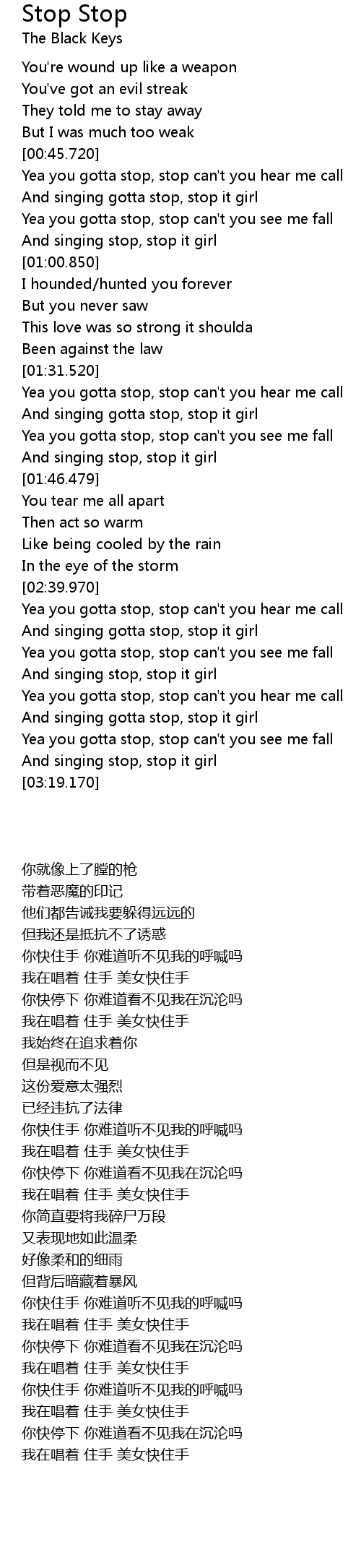 | [02:59.700] | And singing gotta stop, stop it girl |