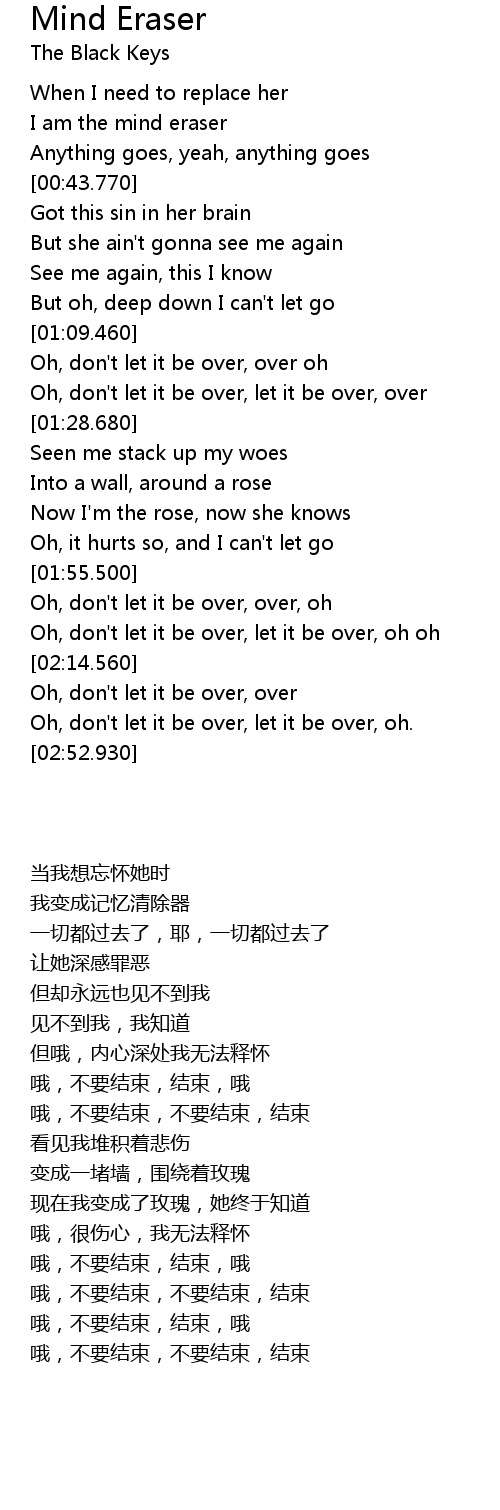 | [02:41.360] | Oh, don't let it be over, let it be over, oh. |