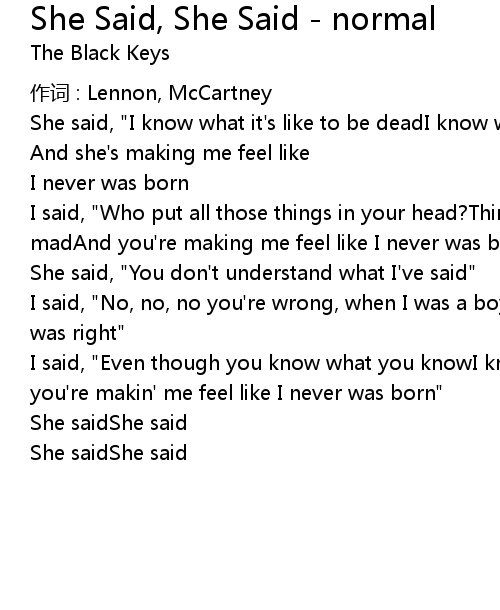 | She said, "I know what it's like to be deadI know what it is to be sad" | |