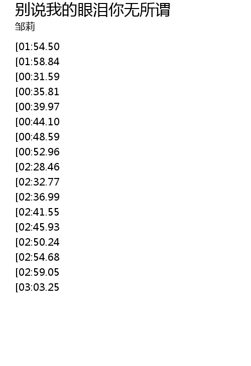 | [02:24.71][00:52.96] | 别说我的眼泪你无所谓 |