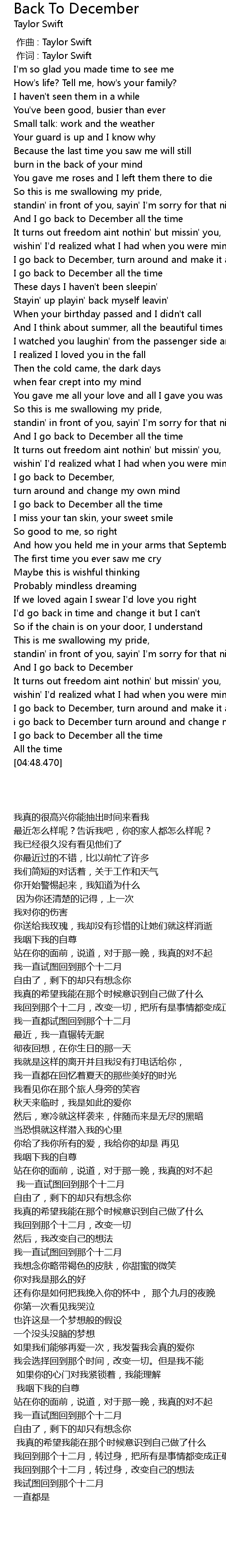 | [01:16.480] | I go back to December, turn around and make it alright |