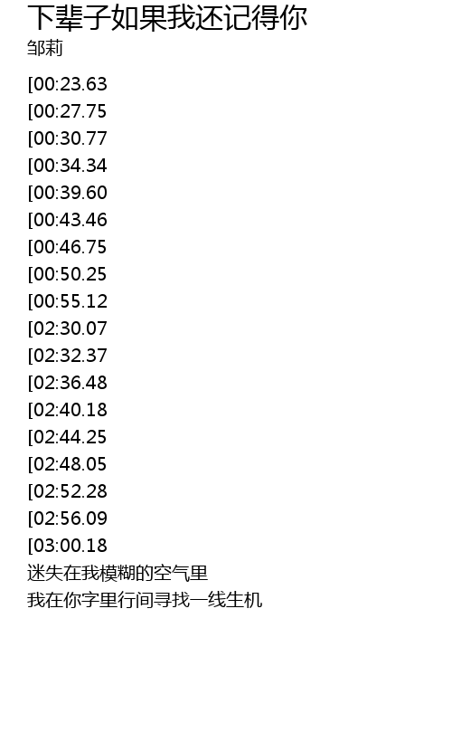 | [03:26.10][02:32.37][01:00.70] | 你说下辈子如果我还记得你 |