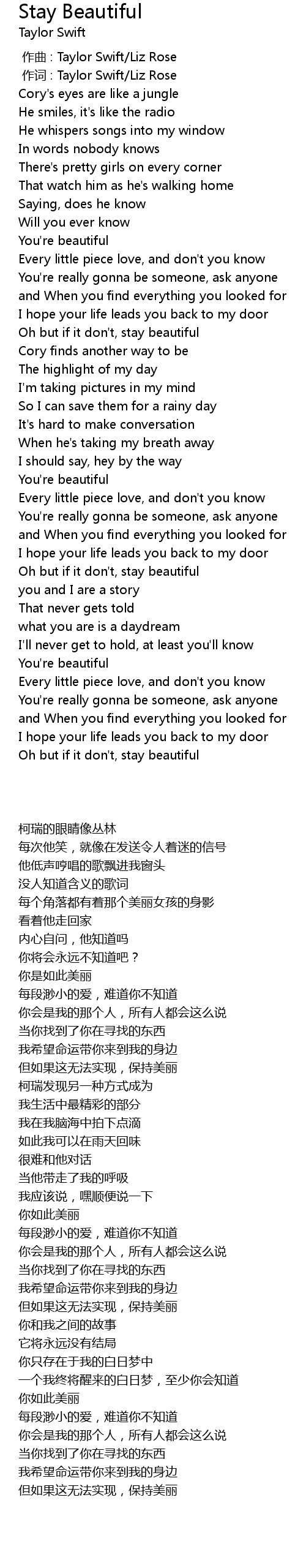 | [00:01.00] | 作词 : Taylor Swift/Liz Rose |