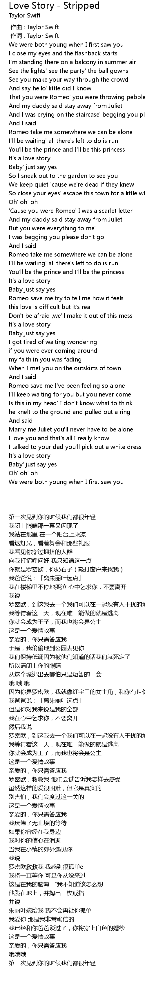 | [01:42.580] | 'Cause you were Romeo' I was a scarlet letter |
