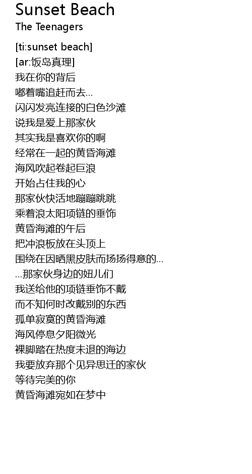 | [00:45.776] | 经常在一起的黄昏海滩 |