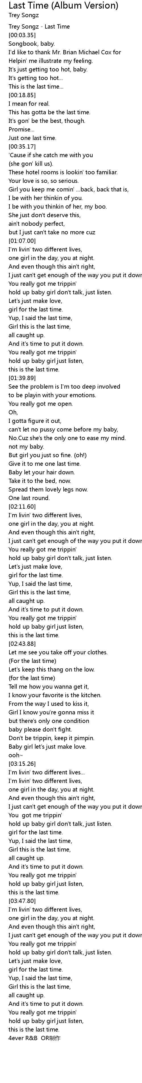 | [00:02.21] | Trey Songz - Last Time |